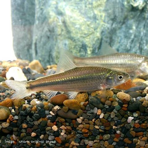 | 種類詳細 | 北海道を除く日本全国に生息する小型のコイの仲間です。 元々は愛知県以西の本州、四国が生息域でしたが、放流などにより生息地を広げ、モツゴと同様に河川に中下流域や小沼を代表する種です。 体色は褐色がかった銀白色で、体側中央には太い暗色のラインをもちます。 同属のホンモロコと比べて、口は丸く口ヒゲが長く、ずんぐりとした体型をしているのが特徴です。 飼育は容易でエサは選り好みせずに、よく食べます。性質は温和なので混泳にも向いています。 |