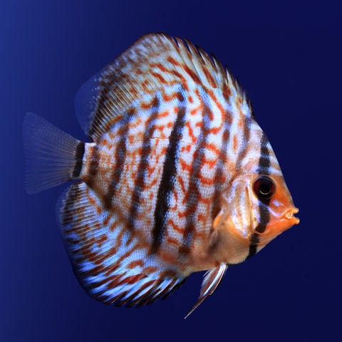 (到着時のディスカスは色彩が一時的に抜けている場合や、バーチカルストライプや黒色の点が強く表れる場合があります。)
