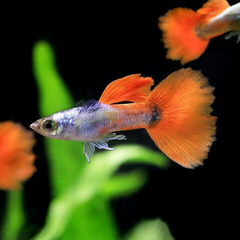 グッピーの稚魚はすぐに細かな人工飼料を食べられます。餌の与えすぎによる水質の悪化に注意して、少量の餌を1日に数度与えます。1ヶ月程度でオスメスが判別でき、3ヶ月程で交配可能です。