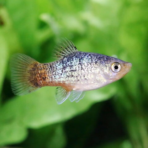 | 種類詳細 | グッピーとともに古くからアクアリウムの世界で愛好される卵胎生メダカです。 原種は尾ビレの付け根付近に三日月模様を持つことからムーンフィッシュとも呼ばれます。 この尾びれの模様と体色に着目して多くの改良品種が作られ、派手な色と、愛嬌のある姿、繁殖の容易さから入門魚とされています。 海外では愛好家も多く、ドイツやヨーロッパ野より美しい改良品種も知られます。 飼育、繁殖ともに容易で、糸状藻をついばむので、コケの除去には力不足ですが、予防に役立ってくれます。 |