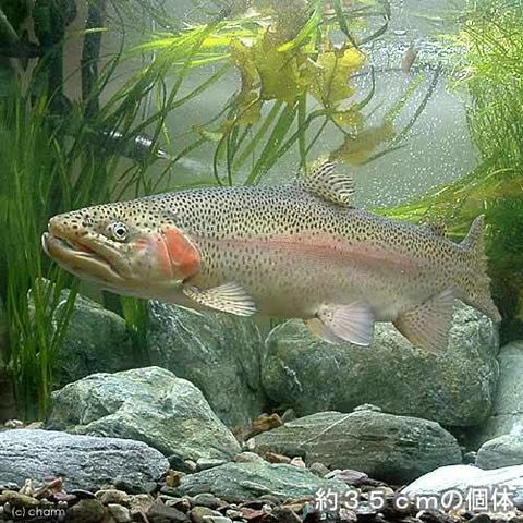 | 種類詳細 | 北米原産のサケの仲間です。日本には1877年に移植され、有用食用魚として古くから養殖されてきました。体側には、エラ蓋から尾柄にかけて朱紅色の縦帯があり、体には多数の黒点をもち、美しい色彩を持ちます。“テツ”、“スチールヘッド”と呼ばれる降海型も知られ、1mを越す大型個体も知られています。本種は冷水魚なので夏等にはクーラー等を使用して水温を18℃以下に保つ必要があります。また、小魚等も捕食するため混泳は適していません。 |