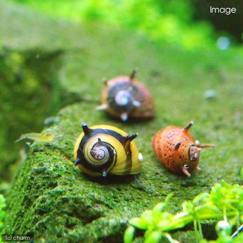 | 種類詳細 | 東南アジアの太平洋沿岸域の汽水に生息する貝で、水槽ガラス面のコケを取る能力が高くコケ取りとして人気の貝です。 サザエのようなトゲ(イガ)を持つことからイガカノコガイとも呼ばれ、石巻貝に比べ見た目も面白く、石巻貝のようにひっくり返って起き上がれないということが少ないというメリットがあります。 黄色と黒の美しい色彩はバリエーションが多く、黄色の面積が多いもの、黒の面積が多いものが見られるほか、数千匹の内何匹かの割合で赤やオレンジの個体も見られます。 通常のサザエ石巻貝に比べ小さなサイズで流通することが多いです。汽水で増える貝なので、水槽内で増えすぎて困る事もありません。 水槽に入れておくとコケ予防に非常に高い効果を発揮してくれます。 |