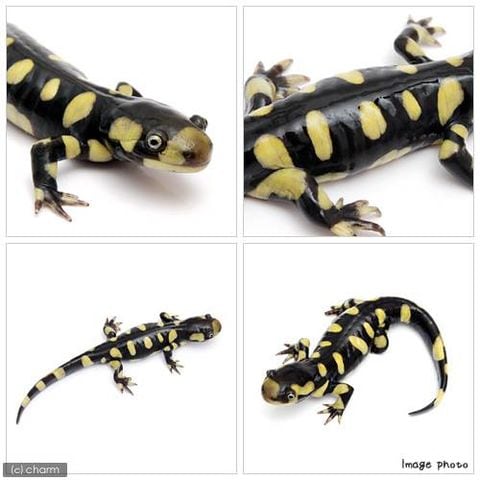 | どんな種類? | アメリカに広く生息するトラフサンショウウオ科(Ambystomatidae)の仲間です。名前の通り、黄色の地肌に黒い帯模様を持つのが特徴で、典型的な模様を持つ個体はまさに虎のような模様となります。かつてはトウブタイガーサラマンダーと共にタイガーサラマンダーの1亜種として分類されていましたが、現在はトウブタイガーとは別種として分類されることが多いようです。 高山から草原、さらには砂漠地帯にも生息しているほどの強健種で、主に他の動物がほった穴などで暮らしています。また、生息環境や食性によりいくつかのパターンが見られることが知られており、現在はオビがやや少ないものが多く流通しているようです。有尾類の中でも特に強健な種で、初心者の方にも特にオススメできる種類です。 |