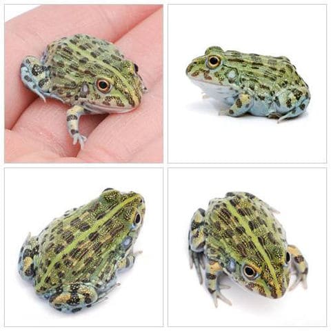 | どんな種類? | アフリカに分布するアカガエル科(Ranidae)の仲間です。 幼体のうちは暗緑色の体にオリーブグリーンのマダラ模様が入りかわいらしい顔つきをしていますが、成長すると20cmを超えるほどになり、また体色も淡いオリーブグリーン一色に近い体色となります。非常に貪欲で、自然下では小型の哺乳類なども餌にしてしまいます。 |