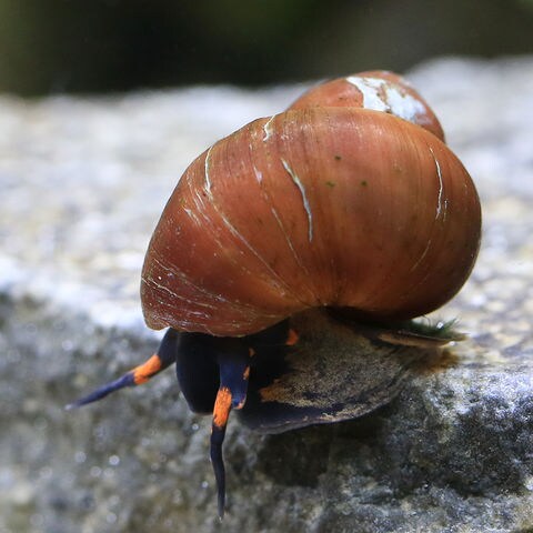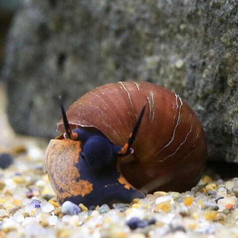 | 種類詳細 | パプアニューギニア、インドネシアに生息する、新しく発見されたタニシの仲間の淡水性巻貝です。 目を引く紫色をした体にオレンジ色のスポットが所々に入っており、タニシの仲間の中では特徴的な色彩を持っています。 日本に生息するタニシの仲間同様に雌雄が分かれており、オスの個体は右の触角が丸まっていることから判別が容易に可能です。 繁殖形態もタニシの特徴である卵胎生の為、卵ではなく直接稚貝が生まれてくるので比較的繁殖スピードは遅いものと思われます。 |