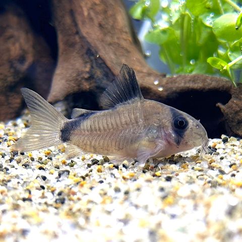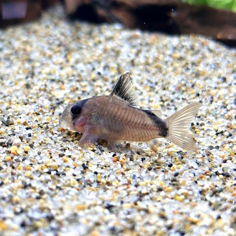 コロンビア、メタ川原産のコリドラスです。古くから知られるポピュラーな種で、やや寸胴な体型と茶色の体色が可愛らしい種です。アイバンドを持ち、背ビレから尻ビレ付け根にかけてブラックラインが入ります。飼育は導入時の水質の変化に弱い面がありますが、一度落ち着けば丈夫な種です。 |
