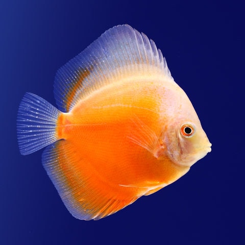 極端な水貨の変化がなければ弱酸性~中性付近の軟水で飼育が可能で、十分にろ過の効いた環境が必要です。 ディスカスハンバーグや生餌は水質を悪化させやすく、最適な水質を維持する為には残餌やフンを取り除きやすいベアタンクでの飼育が適しています。 また他の魚に比べ高水温での飼育が適し、特に幼魚は、30~32°C程度の水温が必要です。 餌は専用飼料のディスカスハンバーグの他、食いのよい冷凍アカムシやフレークフードを併用し、バランスの良い給餌が必要です。また赤系の品種には色揚げ効果の高い餌で鮮やかな発色が得られます。 ディスカスは気分や調子によって体色を変化させ、不調の時や怯えているときは体色が黒くなります。 少数匹での飼育は怯えやすく、餌食いが悪いこともあります。水槽に暗幕等をかけて2、3日静かな環境で落ち着かせるとよいでしょう。 美しいプロポーションと色彩のためには、適切な水質とゆとりのある水槽サイズが必要です。 幼魚期は給餌回数を多くすると同時に適切な水質を維持し、8cm程度のサイズになったら体高やヒレの伸張がしっかりでるように高さが45cm以上ある水槽で飼育するとよいでしょう。 |