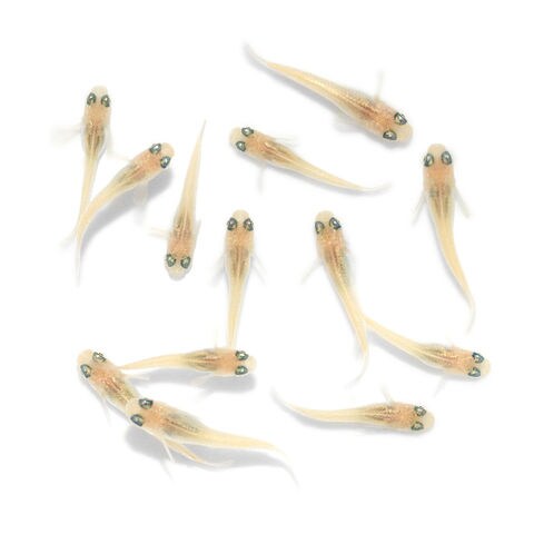 | 繁殖 | 繁殖は容易で、屋内でも屋外でも繁殖させることができます。 背ビレに切り込みがあり、尻ビレが幅広いのがオスでこれらの特徴を持たないのがメスです。 オスとメスをある程度の匹数用意することで、メスが総排泄口付近に卵をぶら下げている姿を見ることができます。 1ペアでも繁殖行動は確認でき、増やすことができます。 産卵床としてマツモなどの水草や、ホテイアオイなどの浮草を用意すると水草の茎や葉、浮草の根に卵が産み付けられます。 また、産卵床がない状態だと過抱卵になったり、卵を水槽底やシリコン部分に産み付ける可能性があります。 産卵は朝に行われることが多く、一度産卵が始まると数日間で何度も産卵が行われます。 産卵された卵はそのままでも孵化させることができますが、生まれたての稚魚が親魚に食べられてしまう場合があるため、別の水槽や隔離ネットなどに移した方がいいでしょう。 卵は水温にもよりますが、1週間~10日間ほどで孵化します。 稚魚は親魚に与えていた人工飼料を細かくして与えるか、稚魚用の人工飼料を与えれば成長させることができます。 その他の方法として、産卵床にシュロの皮や毛糸などで作ったモップを使用したり、取れた卵をほぐしてメチレンブルー系の薬に漬けて死卵を防ぐといった方法もあります。 |