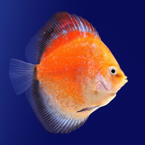 極端な水貨の変化がなければ弱酸性~中性付近の軟水で飼育が可能で、十分にろ過の効いた環境が必要です。 ディスカスハンバーグや生餌は水質を悪化させやすく、最適な水質を維持する為には残餌やフンを取り除きやすいベアタンクでの飼育が適しています。 また他の魚に比べ高水温での飼育が適し、特に幼魚は、30~32°C程度の水温が必要です。 餌は専用飼料のディスカスハンバーグの他、食いのよい冷凍アカムシやフレークフードを併用し、バランスの良い給餌が必要です。また赤系の品種には色揚げ効果の高い餌で鮮やかな発色が得られます。 ディスカスは気分や調子によって体色を変化させ、不調の時や怯えているときは体色が黒くなります。 少数匹での飼育は怯えやすく、餌食いが悪いこともあります。水槽に暗幕等をかけて2、3日静かな環境で落ち着かせるとよいでしょう。 美しいプロポーションと色彩のためには、適切な水質とゆとりのある水槽サイズが必要です。 幼魚期は給餌回数を多くすると同時に適切な水質を維持し、8cm程度のサイズになったら体高やヒレの伸張がしっかりでるように高さが45cm以上ある水槽で飼育するとよいでしょう。 |