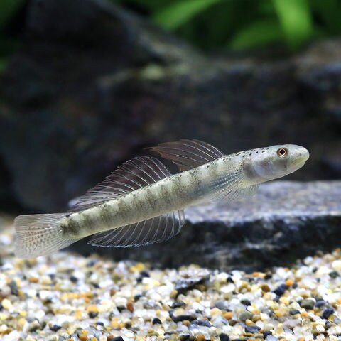 | 繁殖 | 一般にメスは透明で、オスは婚姻期には通常よりさらに美しい色彩を見せてくれます。シェルターや流木の陰に産卵するケーブスポウナーであることが知られていますが、両側回遊魚であることから稚魚が小さく、幼魚期には海水が必要なため、水槽内での繁殖は難しいでしょう。 |