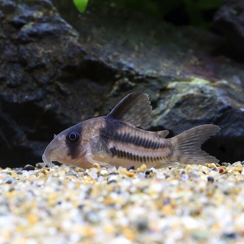 | 種類詳細 | ブラジル、タパジョス川原産のコリドラスです。 アンチェスターのように体高が高く、ビファシアータスのように体側に2本の黒いラインを持つ、2種の魅力を兼ね備えた美しい種です。 体側の黒いラインには、太いタイプの個体と細いタイプの個体が存在したことから、発見された当時は両者のハイブリットと言われることも有りましたが現在は独立種として記載されています。 飼育は容易で、性格も温和なため混泳も問題ありません。 |