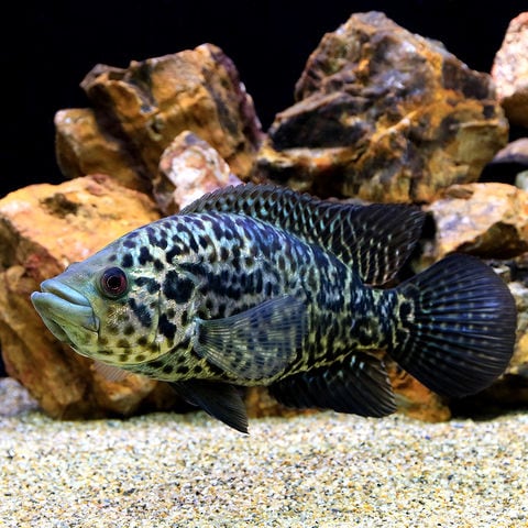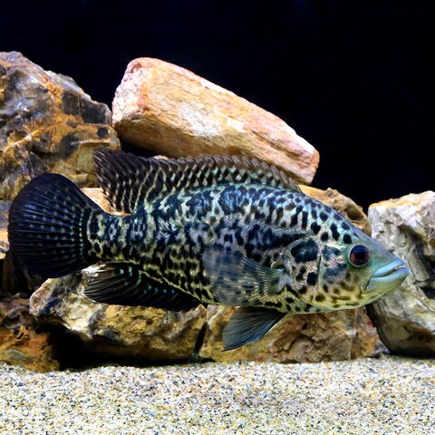 | 種類詳細 | 中米原産の大型アメリカンシクリッドの仲間です。 幼魚は比較的に地味な色合いですが成長に従い全身がヒョウ柄へ変化し、各ヒレが青白く発色する美しい種類です。 オスとメスでサイズが大きく異なりオスは65cmほどまで成長するのに対し、メスは40cmほどとオスに比べ小柄です。 河川や湖沼などに生息しており小魚や虫、エビなどを捕食します。飼育下では餌のより選り好みよく食べるため 気性は粗暴で混泳にはあまり適しません。力が強いためヒーターなどはカバーで覆うなどの対策が必須です。 |