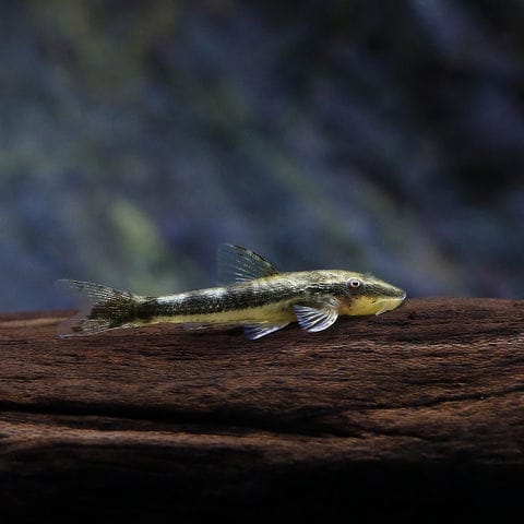 | 種類詳細 | ブラジル、タパジョス川原産のオトシンの仲間です。 スレンダーな体型とやや長い口吻が特徴的な種で、他のオトシンに比べて円筒に近い体型を持ちます。 頭部から体側には1本の黒いラインが入り、ライン上部は格子状の模様が見られます。 飼育は落ち着けば難しくなく、他のオトシンと同様に餌に注意し、高水温や水質の悪化に注意が必要です。 水槽内では他のオトシンに比べ素早い泳ぎを見せてくれます。 |