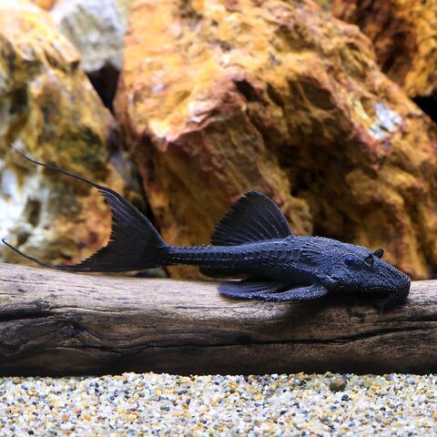 | 種類詳細 | ブラジル、トカンチンス、シングー川原産のプレコです。 現在では禁制魚として輸入がほとんど途絶えてしまっている種で、その姿はアグアプレコに良く似ています。 本種は幼魚の頃から体側は模様の入らないまさに漆黒の体色をしており、アグアプレコと比べややずんぐりとした頭部を持ちます。 最大で50cm以上にまで成長すると言われており、大型種の中でも流通が少ないことからも人気があります。 トカンチンス川産の個体は体格が太くとされ、シングー川産の個体は華奢で胸鰭が大きくなることから「バットマンガリバー」と呼ばれることもあります。 非常に気性が荒く攻撃的な為、単独飼育か広いスペースでの混泳が適しています。 |