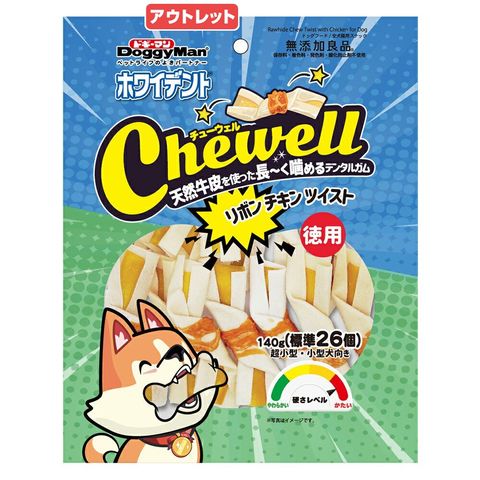 賞味期限:2026年01月31日 ドギーマン ホワイデント Chewell リボンチキンツイスト 徳用 140g 訳あり 関東当日便