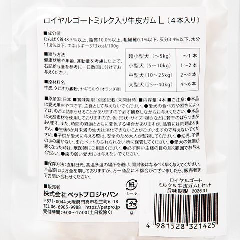 賞味期限:2026年01月31日 ペットプロ ロイヤルゴートミルク&牛皮ガム Lセット 訳あり 訳あり 関東当日便