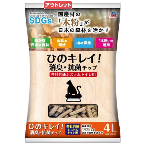 アウトレット品 猫砂 ひのキレイ!消臭・抗菌チップ 4L 各社共通システムトイレ用 お一人様6点限り 訳あり 関東当日便