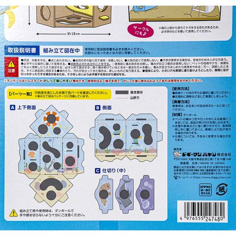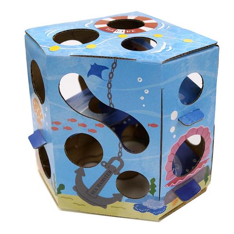 | 特長 | ●ハムスター用のボックス型のおもちゃです。 ●登ったり、降りたり、通り抜けたりして遊べます。 ●ダンボールを使用した組み立てタイプです。 |