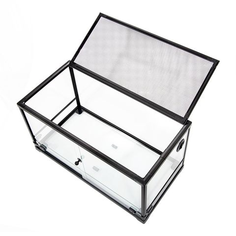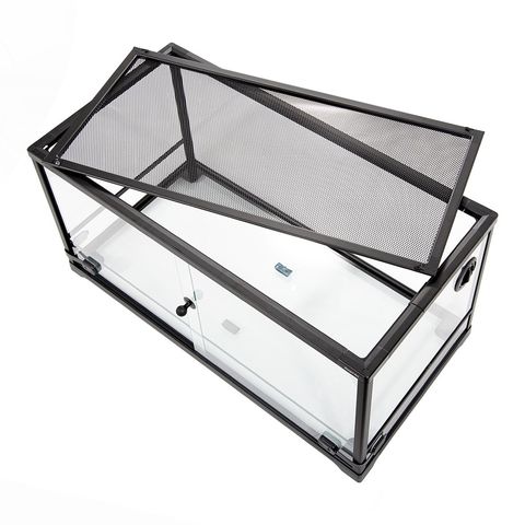 ●正面がフレームレスとなっており、生体やレイアウトの視認性・外観の美しさを追求した組み立て式のスライドタイプの爬虫類ガラスケージです。 ●強化ガラス、アルミ合金フレーム、丈夫な金属メッシュを採用しており、頑強な造りとなっています。 ●トップカバーは前後どちらにも開くことができ、ロックを全て解除すれば取り外し可能です。 ●電源コード、加湿器のホースやチューブ、噴射機のノズルなど様々な太さのものを通すことができる多機能ケーブルパスが側面についています。 ●ピンタイプロック、ベルトタイプロック、ライトステーが標準で付属しています。 |