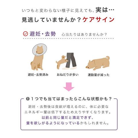 | 原材料 | コーン、肉類(鶏、七面鳥)、小麦、コーングルテン、植物性繊維、加水分解タンパク(鶏、七面鳥、豚)、動物性油脂、超高消化性植物性タンパク(消化率90%以上)、ビートパルプ、魚油(オメガ3系不飽和脂肪酸〔EPA+DHA〕源)、酵母および酵母エキス、大豆油、サイリウム、ルリチシャ油、グルコサミン、マリーゴールド(ルテイン源)、加水分解軟骨(コンドロイチン硫酸源)、アミノ酸類(L-リジン、タウリン、L-カルニチン)、ゼオライト、ミネラル類(Cl、Na、P、Ca、Zn、Mn、Fe、Cu、I、Se)、ビタミン類(A、D3、コリン、E、C、パントテン酸カルシウム、B6、ナイアシン、葉酸、B1、B2、ビオチン、B12)、保存料(ソルビン酸カリウム)、酸化防止剤(ミックストコフェロール、ローズマリーエキス) |
