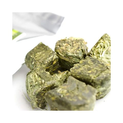 | 特長 | ●「牧草嫌いのうさぎや小動物にも食べてもらえる牧草を!」をコンセプトに開発しました。 ●アメリカンペットダイナー社のティモシーとアルファルファを圧縮したキューブ牧草です。 ●チモシー&アルファルファのミックスキューブになりました。 |
