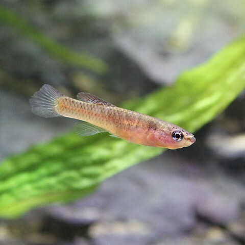 | 繁殖 | アフリカン・ランプアイ等の卵生メダカと同様に、十分に成熟したペアを飼育していると盛んにオスがメスを追いまわすようになり、産卵床になるウィローモスや産卵モップに産卵します。 卵はサイズが小さく、親魚が卵を食べてしまうことが多いので、卵は見つけ次第回収したほうが良いでしょう。 孵化した稚魚は数日で沸かしたてのブラインシュリンプを摂食できるようになります。 |