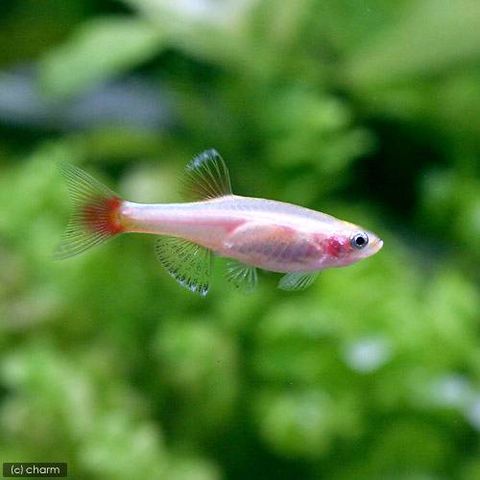 | 種類詳細 | 古くから親しまれている中国原産のコイの仲間です。 小型で美しいだけでなく、温帯種のため低温に強く、コップなどの小型の容器で飼育できることからコッピーの愛称でも知られています。 名前の通り赤く染まるヒレと体側のブルーのラインは観賞価値が高く、生餌として扱われたりもしますが、飼育が楽しめる入門にうってつけな種といえるでしょう。 アクアリウムではポピュラーな種ですが、生息地の白雲山周辺では開発によりすでに絶滅したと言われています。 飼育は容易でエサもなんでも良く食べ繁殖力も旺盛です。 |