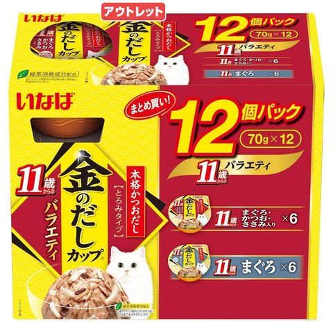 アウトレット品 いなば 金のだし カップ 12個パック 11歳からのバラエティパック 70g×12個 キャットフード 訳あり 関東当日便