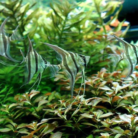 | 混泳の注意点 | 長いヒレをかじる種との混泳は適さず、低層魚のプレコやコリドラス、ローチの仲間とは相性が良いです。小型のカラシンなどはエンゼルフィッシュが成長すると食べられてしまうことがあります。エビはエンゼルフィッシュにとっては絶好のご馳走になってしまうため混泳は不可能です。 エンゼルフィッシュ同士での飼育では成長と共に力関係の弱い固体がいじめられることがあるので、様子をみて隔離をしてあげる必要があります。また他のエンゼルフィッシュやディスカス、ブリード個体とワイルド個体を一緒に飼育すると細菌による感染症が伝染してしまうので、同じ水槽での飼育は控えた方が良いでしょう。 |