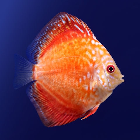 頭部以外が赤く染まるピジョン系ディスカスの代表種です。模様の個体差が大きく成長とともにピジョン系特有のパールスポットが現れる事があります。 赤味を強くするには色揚げ効果の高い餌を与えることでより鮮やかな色彩が狙えます。 |