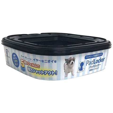| 特長 | ●室内犬用のトイレバケツ「パッドロッカー」の交換用カートリッジです。 ●臭い・雑菌を素早く閉じ込め衛生的に使えます。 ●フタをあけて捨てるだけです。 ●ゴミ袋の要らない専用カートリッジなので経済的です。 ●バケツ内にペットシーツ約12枚分ためておくことができます。 ●犬1匹の場合カセット1個で、約2ヶ月連続使用できます。 |