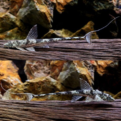 ブラジル、アマゾン川原産のロリカリアの仲間です。 尾ビレの縁が黒く染まり、背ビレの付け根にスポット模様を持ちます。 同様の模様を持つモウイ種のスポットに比べやや不明瞭で大きいです。また、生息地が異なります。 下向きについた口にはたくさんのヒゲが生え、プレコのように流木等にも吸い付きますが、どちらかと言えば底砂等からエサを摂食します。飼育は他のロリカリア類と大差なく植物性のエサを中心に流木などを用意してあげるとよいでしょう。 |