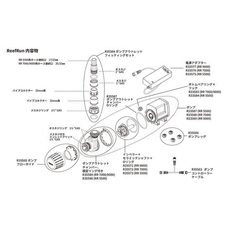 | セット内容 | ●接続口 PVCパイプアダプター:25mm、32mm用 ホース接続口:ホース内径25mm、32mm用 オスネジソケット:1インチ配管用 ●電源アダプター ●コントローラーケーブル |