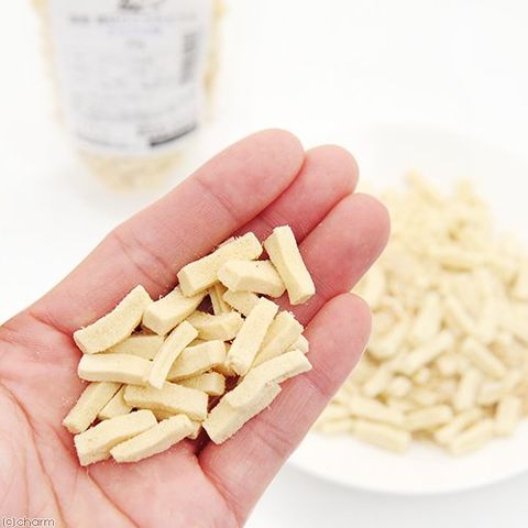 | 特長 | ●小動物にも食べやすいチップ状に仕上げた国産高野豆腐に国産たらの無添加ふりかけをたっぷりトッピング。 ●高野豆腐には小動物に嬉しい大豆たんぱくをはじめ良質な脂質が含まれています。 ●また酸化を抑えるサポニンやイソフラボン、カリウムなどもバランスよく含まれています。 ●おさかなのうまみが凝縮されたタラのふりかけで食いつき抜群!残ったふりかけはごはんのトッピングにも最適です。 ●旨み成分豊富なたらは脂肪分が少なく、体重が気になる小動物にもおすすめです。 ●いずれの素材にも着色料や保存料は使用しておりません。素材そのままなので安心です。 ●保存に便利なチャック付きパッケージです。 ●窒素ガス充填パックなので新鮮なままお届けします。(窒素ガスを充填しているため袋が膨らんでいます。) |