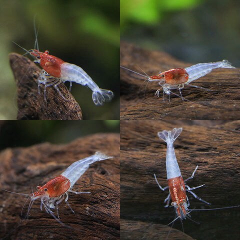 | 種類詳細 | こちらの改良品種の元になったのは、2010年に台湾から紹介された改良品種のルリーシュリンプだと思われます。 体の一部、胴の真ん中の部分が透明になるという特徴を持ったルリーシュリンプでしたが、 こちらの新たに作出された赤ずきんと呼ばれるタイプでは、頭部にのみ赤い発色が残りほかの部分は透明になるという発色パターンを持ちます。 通常のルリーシュリンプと比べて、明確に体の前後で色が分かれていることで通常のルリーシュリンプと比べてより存在感のある品種となっています。 飼育は通常のレッドチェリーシュリンプ同様に高水温と水質の悪化、薬品等に注意すれば容易です。 |