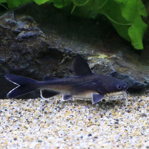 | 品種詳細 | ニューギニア原産のナマズの仲間です。金属光沢を帯びた体に、スレンダーな体型、大きな瞳とヒレの白い縁取りや金色の縞模様が特徴的な種です。水槽内を非常にせわしなく泳ぎ回り、低層魚の中でも存在感があります。飼育は容易ですが導入時には白点病になりやすいので注意が必要です。本種は純淡水種と、成長するにつれて汽水~海水域へと成長に合わせて生息域が移っていく両側回遊種の2種が存在するといわれていますが、見た目で判別することが非常に困難で混同されて扱われており別種であるのか亜種関係にあるのかは定かではありません。また、両側回遊種の方が大きく成長するといわれています。エサはアカムシなどの生餌のほか人工飼料も良く食べます。ナマズの中では温和な性格なので混泳にも向きますが、口に入るサイズの魚は食べられてしまうことがあるので注意が必要です。 |