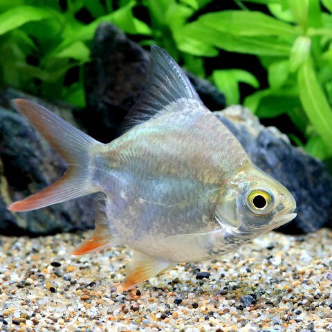 東南アジア原産の大型のバルブです。 体高のある体型と銀色の体色に赤く染まるヒレが美しい魚です。 ショートボディのため通常種程大きくならず、コロっとした見た目が愛らしい品種です。 性格は温和で大きく成長することからアロワナ等の大型魚のタンクメイトとして人気があります。 飼育は容易で、水質にうるさくなく、餌もよく食べます。 泳ぐ力が非常に強いため水槽にフタを設置した方がよいでしょう。 |