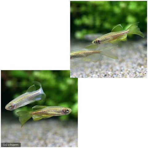 | 種類詳細 | 古くから親しまれているレオパードダニオの改良品種です。 原種同様にレオパード模様が特徴的で美しい長いヒレが美しい種です。 長いヒレは観賞価値が高く、入門にうってつけな種といえます。水槽内でも活発に泳ぎ、見ていても非常に楽しいです。 飼育は容易でエサもなんでも良く食べ繁殖力も旺盛です。 |