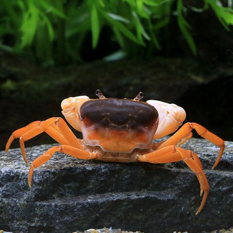 | 混泳の注意点 | カニの中では攻撃性が低く複数匹飼育が可能ですが、過密になるとケンカでハサミや足を失うことがあります。 十分なスペースと隠れ家を用意する必要があります。動きの緩慢な魚は捕食されてしまうことがあります。 また大型になる種には本種が捕食されてしまうことがあります。 |