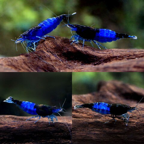 | 飼育のポイント | 熱帯魚や他のエビと同様に十分なろ過と安定した水質を用意することが大切です。pH6.0~6.8程度、硬度は0よりは少しあるほうが良く、ソイル系の底砂を用いることで飼育は容易になります。青味を強くしたい場合はpHを7.5程度に保つとよいとされています。 夏場の高水温には注意が必要です。また酸欠にも弱いので、特に高水温時の溶存酸素量の低下は危険です。また、エビは魚病薬や水草の農薬などの薬品にも弱いので注意が必要です。 |