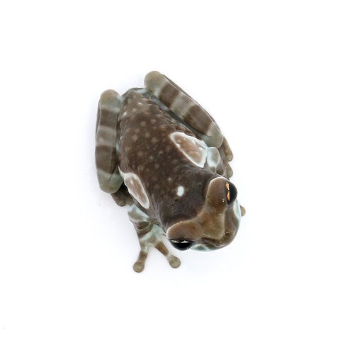 | どんな種類? | エクアドル、ベネズエラ、フランス領ギアナ、ブラジル、ボリビアなどの南米北部に生息するアマガエル科(Hylidae)の仲間です。 ホルスタインのような白と黒のツートンカラーが特徴的なツリーフロッグで、別名の「ジュウジメドクアマガエル」の名の通り眼球には黒の十字模様が入ります。幼体の時は模様がはっきりとしていますが、成体になると白いイボが表れ、また体色もややくすんだ色合いになることが多いようです。かわいらしい外見から人気が高く、CB個体も多く出回っているオススメのカエルです。 |
