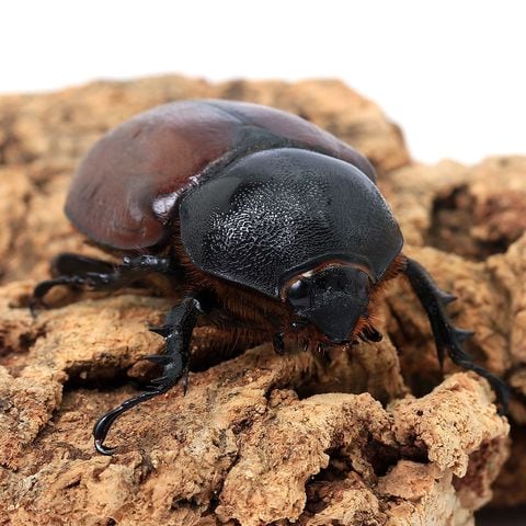 | どんな種類? | ゴホンヅノカブトの近縁種で、オスには頭部に1本、胸部にノコギリ状の角が2本、合計3本の角があります。 体色は頭部、前胸が黒色、上翅は暗橙色~小豆色を呈します。 危険を感じるとと上翅と腹部をこすり合わせてキューキューという音を発します。 飼育や繁殖などの生態についてはまだ分かっていない事が多い種類です。 |