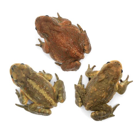 日本固有種であるニホンヒキガエルよりも小型で、体色はオレンジ~茶色と多種多様です。日本では宮古諸島に生息していることから「ミヤコ」の名前が付いていますが、大東諸島にも1970年代に人為的に導入され、現在移入種として定着しています。宮古諸島のものは自然環境保護条例によって保護されている為流通することはなく、移入種として扱われている大東諸島のものが流通しています。 生活様式は地表棲で、日中は地面の中や落ち葉・流木の陰などに隠れて生活しています。夜になると地表に表れ、小型の昆虫類を食べています。小型ながらヒキガエルらしい迫力のある体型をしており、また丈夫で飼いやすいためオススメの種類です。 |