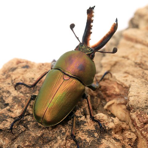 | どんな種類? | パプキンの愛称で有名な鮮やかな体色を持つクワガタです。 メタリックで鮮やかな体色と、小さな頭部に湾曲した大アゴ、丸く高さのある胸部、細い腹部、前脚の飾り等、クワガタの中でも独特の形態を持っています。 鮮やかな体色には色彩変異が多く見られることが知られ、青やパープルの個体は非常に人気です。 アルファック産のものは大型になる傾向が強く、「デカパプ」の愛称をもっています。 昼行性で鑑賞に向き、小型種で省スペースでも飼育可能である点も魅力といえるでしょう。 成虫の寿命は短いものの、非常に多産で幼虫期間が短く、ライフサイクルが非常に早いのも特徴です。 様々なバリエーションを持つ色彩は、ある程度遺伝することが知られ、愛好家の方により積極的に固定が進められています。 小型で大アゴのはさむ力が弱いため多頭飼育も可能で、昼間に活発に活動するので鑑賞に向きます。 小型種であるためエサのゼリーの消費量も少なく経済的な種ともいえます。 |