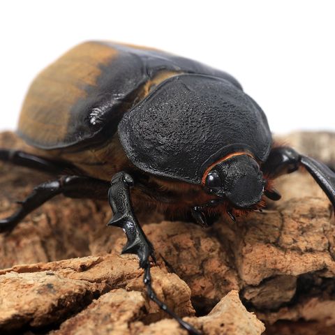 | どんな種類? | 世界で最も体重の重いゾウカブトの中でも最高峰に位置するといわれているギアスゾウカブトの1亜種です。 全身を黄金の体毛が覆う美しい姿と、その巨体、複雑な胸角の造形が非常に魅力的です。 エレファスに類似した姿・色合いをしていますが、頭角がより太く現れるのが特徴的です。 日本には2007年に初入荷され、その後少数のみワイルド個体が入荷していますが、今後再入荷の可能性も低く、非常に希少性の高いカブトだといえるでしょう。 美しい体毛は活動、後食が始まるとどんどん抜けてしまうため、標本などにする場合は早めに処置をする必要があります。 大型種でありながら性格も温和で、飼育、ブリードは非常に容易で、産卵数も多いです。 幼虫の期間が非常に長いゾウカブトの中でも、本種は1年半~2年ほどで成虫になり、飼育自体は容易な種類です。 ゾウカブトの仲間は頭角、胸角を除いた体長は世界最大で、重量も世界で最もあるグループです。 幼虫期間が長く成虫は短命ですが、産卵数が多く幼虫が育てやすく非常に大きくなることから、幼虫飼育を楽しむことができるグループです。 大型のオスでは140gを越すような巨大な幼虫となり、成長の速さとサイズはゾウカブト飼育の醍醐味ともいえます。 性格は温和で動きも非常におっとりしているため、ペアでの同居も不可能ではありません。 活動開始後の成虫は非常に大食漢でエサが切れないように注意が必要です。 活動開始後の寿命が短いため、ブリードのタイミングが重要です。 幼虫から育てる場合は羽化ズレを抑えないと累代が難しくなってしまいます。 |