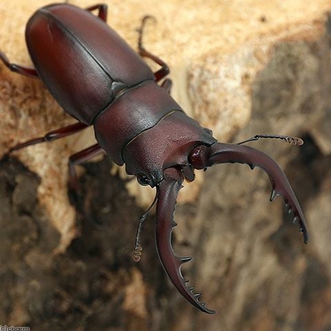 | どんな種類? | 日本で最も普通に見られるノコギリクワガタです。比較的低標高に生息し、夏にカブトムシ、コクワガタなどと共に雑木林でよく見られます。大型個体では70mm近くなり、大きく湾曲した大アゴが特徴的です。この大アゴは変異が大きく、長歯、中歯、小歯の3タイプが見られ、中歯、小歯ではより“ノコギリ”に近い形状となります。体色は赤~黒まで見られます。平地で見られる大型の種として非常に馴染み深い種で、飼育も容易です。 平地から低山地に見られ、成虫は雑木林や河川敷のコナラやクヌギの樹液に集まり、街灯などに飛来することもあります。基本的には夜行性ですが、昼間に活動していることも多いです。また比較的樹上を好み、木を蹴って揺らすことで採集できます。幼虫は根食いで地面に埋まった朽木など、水分を含んだ材から見られます。 本種は離島に亜種が3種知られています。奄美諸島や沖縄に見られるリュウキュウノコギリクワガタとは良く似ていますが、頭盾、大アゴの形状等から別種とされています。 飼育、繁殖は容易で活発に動き回ります。ブリードも非常に容易で、産卵に適したマットであれば容易に産卵します。 |