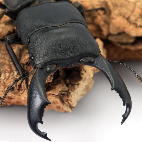 | どんな種類? | 東南アジア一帯に広く生息する大型ヒラタクワガタの代表ともいえる人気種です。 100mmに到達する大きく太い体は迫力と重厚感に溢れています。大アゴは地域によって内歯の位置が上下し、内歯が下方に位置する“内歯下がり”の個体は横幅があることから特に人気です。 流通量の多いベンクール産は内歯上がりのものが多いですが、内歯が中ほどから下方に見られる個体も見られます。アチェ、パダン、リアウ産は内歯下がりが多く、特に横幅のあるアチェは人気の産地になっています。流通量も多く飼育が容易、大きなサイズと大アゴのコレクション性の高さなど、初心者から飽きずに楽しめる種です。 ヒラタクワガタの仲間はオスの気が荒くメスが殺されてしまうことがあるため、交尾時以外はオスとメスを分けて飼育すると良いでしょう。冬場の低温には弱いので温度管理が必要です。 |