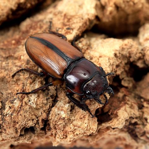 | どんな種類? | 小豆色の前胸と木目のような肌色の上翅が美しいノコギリクワガタです。 オスの大型個体でも50mm程度の小型の種で、大アゴは細い弓状で多数の細かい内歯があるのが特徴です。 大歯型のものはやや珍しく、中歯、短歯のものが一般的です。飼育も容易で繁殖もサイクルが早く飼育しやすい種です。 転倒防止に木端などを入れておく必要があります。小型種であってもオスは意外に気が荒いのでメスと分けたほうが良いでしょう。 |