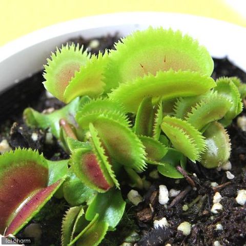 | 特徴 | ●食虫植物の中では最もメジャーな種類で、捕虫葉を瞬時に閉じて虫を捕らえ消化吸収します。 ●捕虫葉の内側には3本ずつ感覚毛があり、虫などが2度触れると閉じ合わさる仕組みです。 獲物を取り逃がすのを防ぐ知恵が隠されています。 ※ハエトリソウは捕虫葉を閉じることにとてもエネルギーを要します。 遊びすぎないようご注意ください。枯れてしまいます。 |