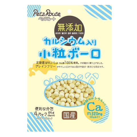 メーカー画像 ペッツルート カルシウム入り 小粒ボーロ 64g 犬 おやつ ボーロ 4984937686987 opa2_stop 20250205 y25m02 Kbsk 犬フード ドッグフード ドッグ いぬ 犬おやつ 間食 カルシウム 無添加 小粒 馬鈴薯 馬鈴薯でんぷん 北海道 ばれいしょ でんぷん 澱粉 でん粉 グレインフリー 小麦粉不使用 小型犬 幼犬 子犬 仔犬 老犬 シニア犬 シニア期 分包 スナック 国産 日本産 卵殻 卵殻カルシウム Ca しつけ トレーニング トリーツ 柔らかい やわらかい 686987 petzroute_treats